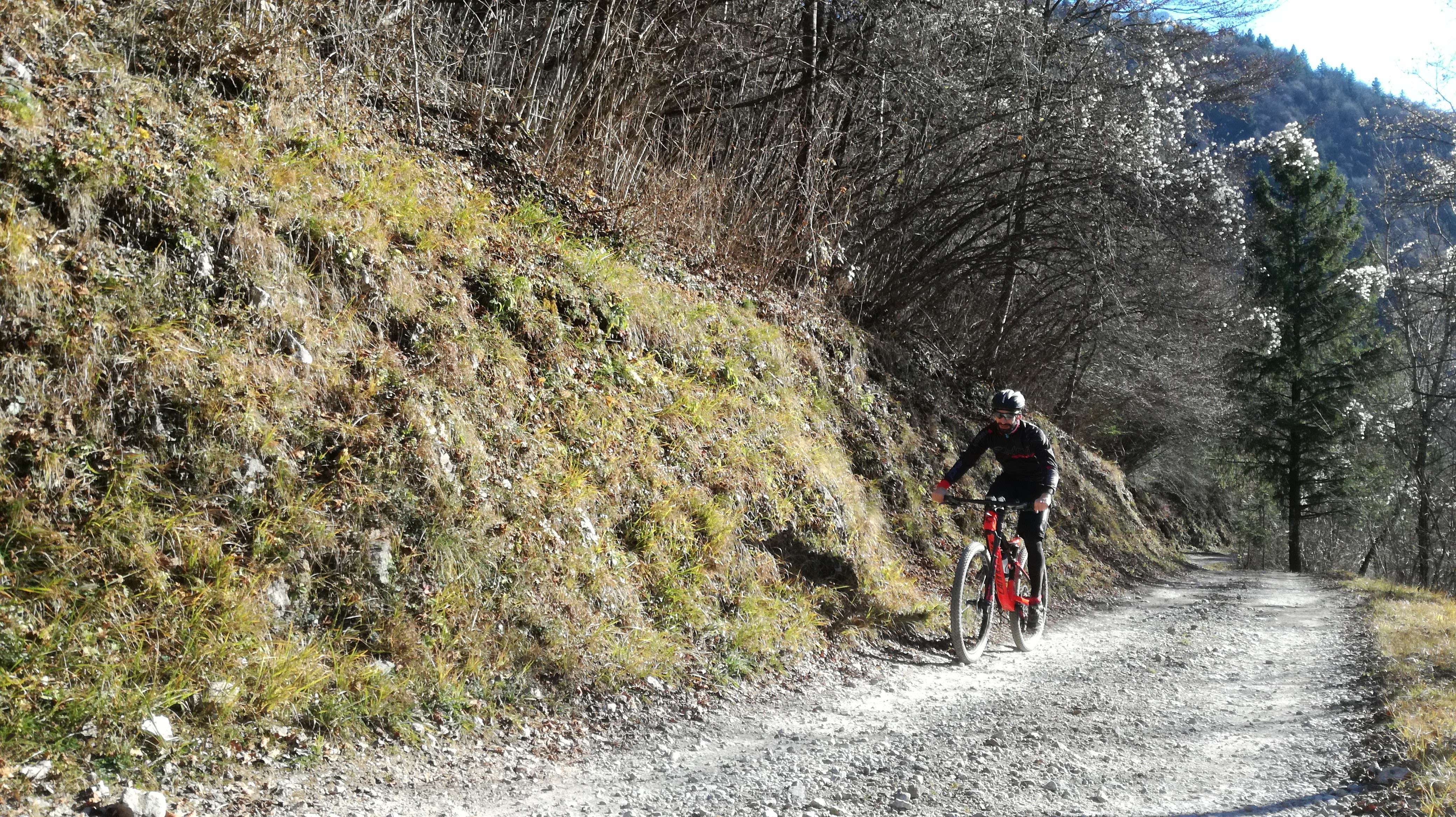 Itinerario Cross-Country/All-mountain che conduce fino agli splendidi prati di Pian del Bene, sotto il Monte Ario.